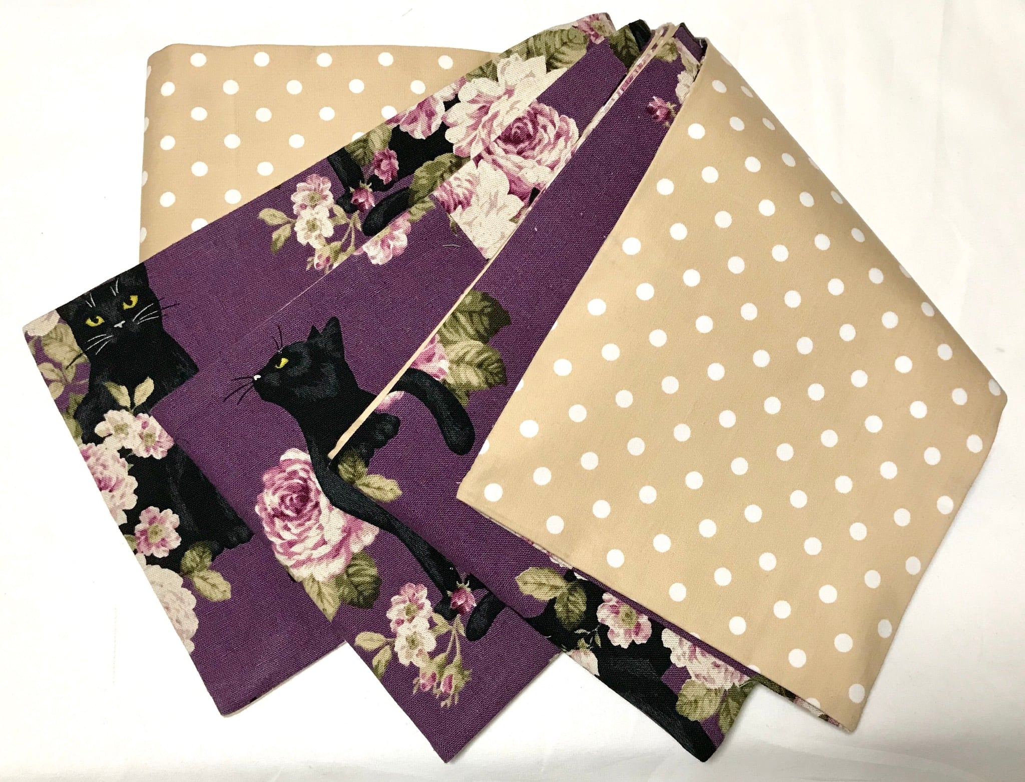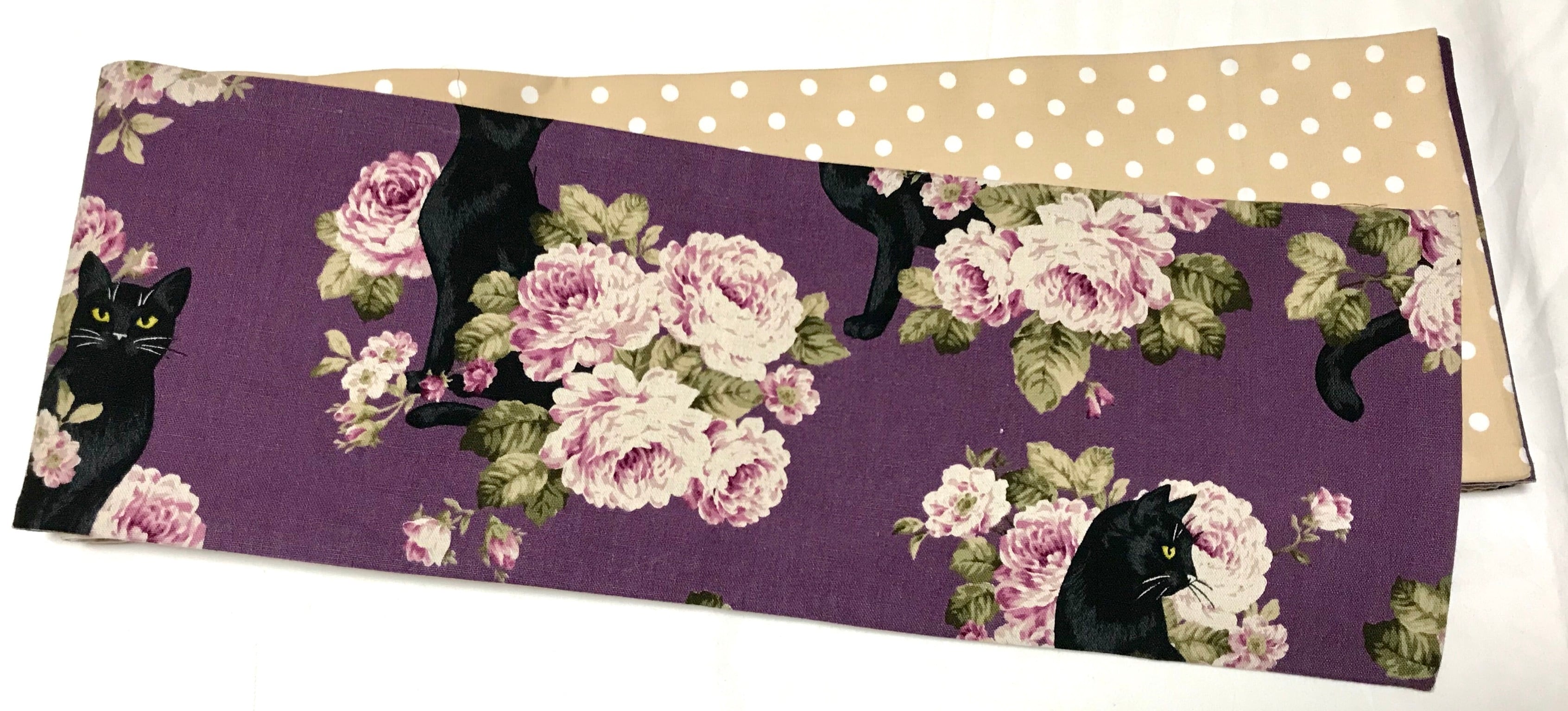 紫地に黒猫と薔薇柄半幅帯新品長尺リバ