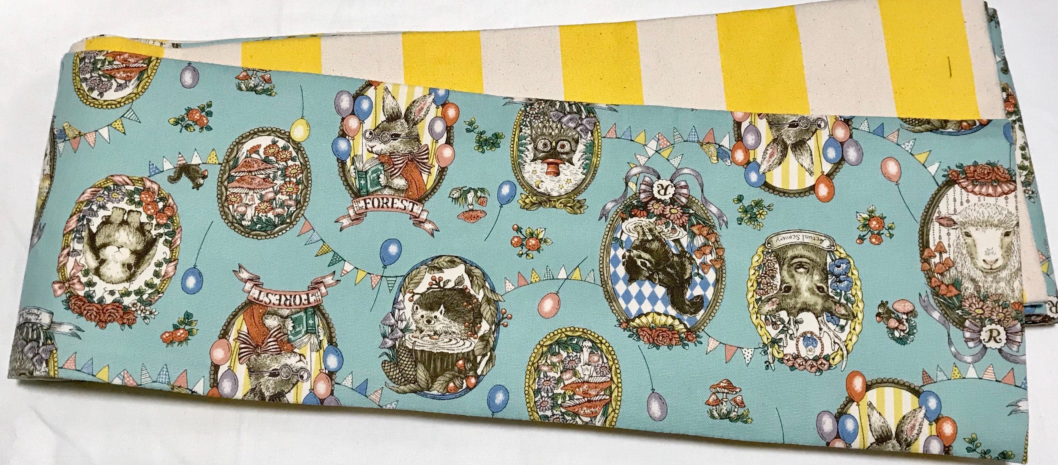 落ち着いた水色に森の動物柄半幅帯 新品長尺リバ