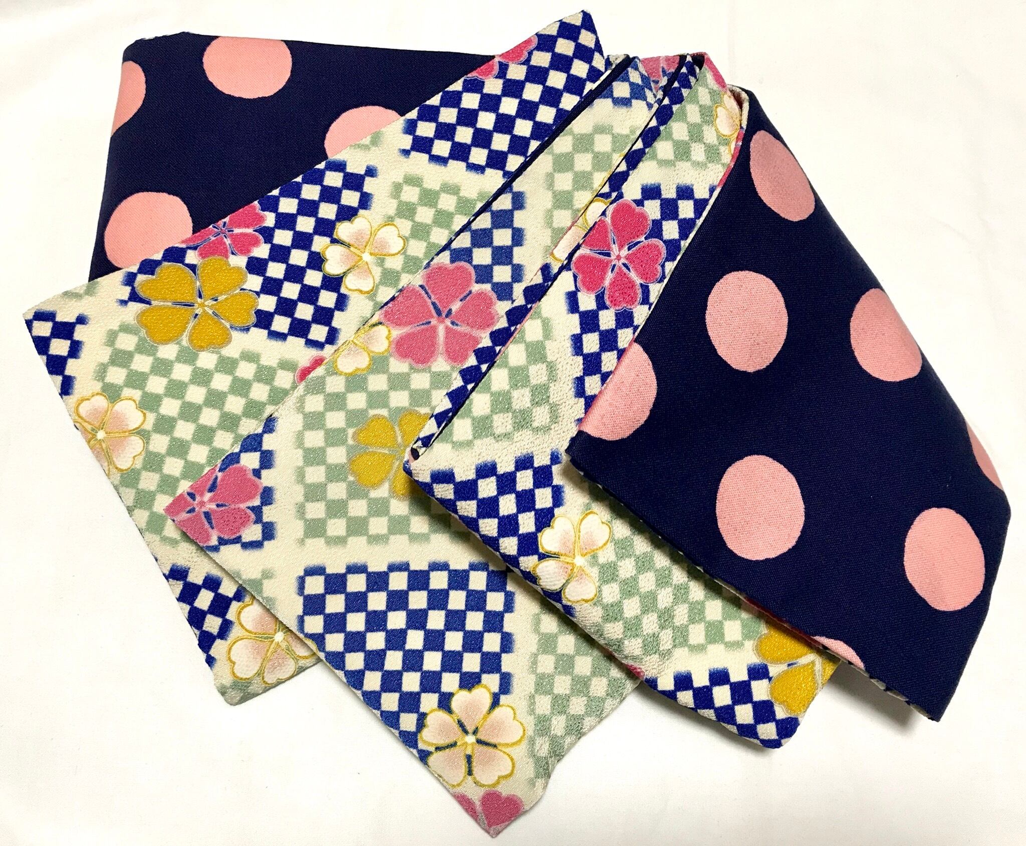お花柄と一松のちりめん半幅帯 新品長尺リバ