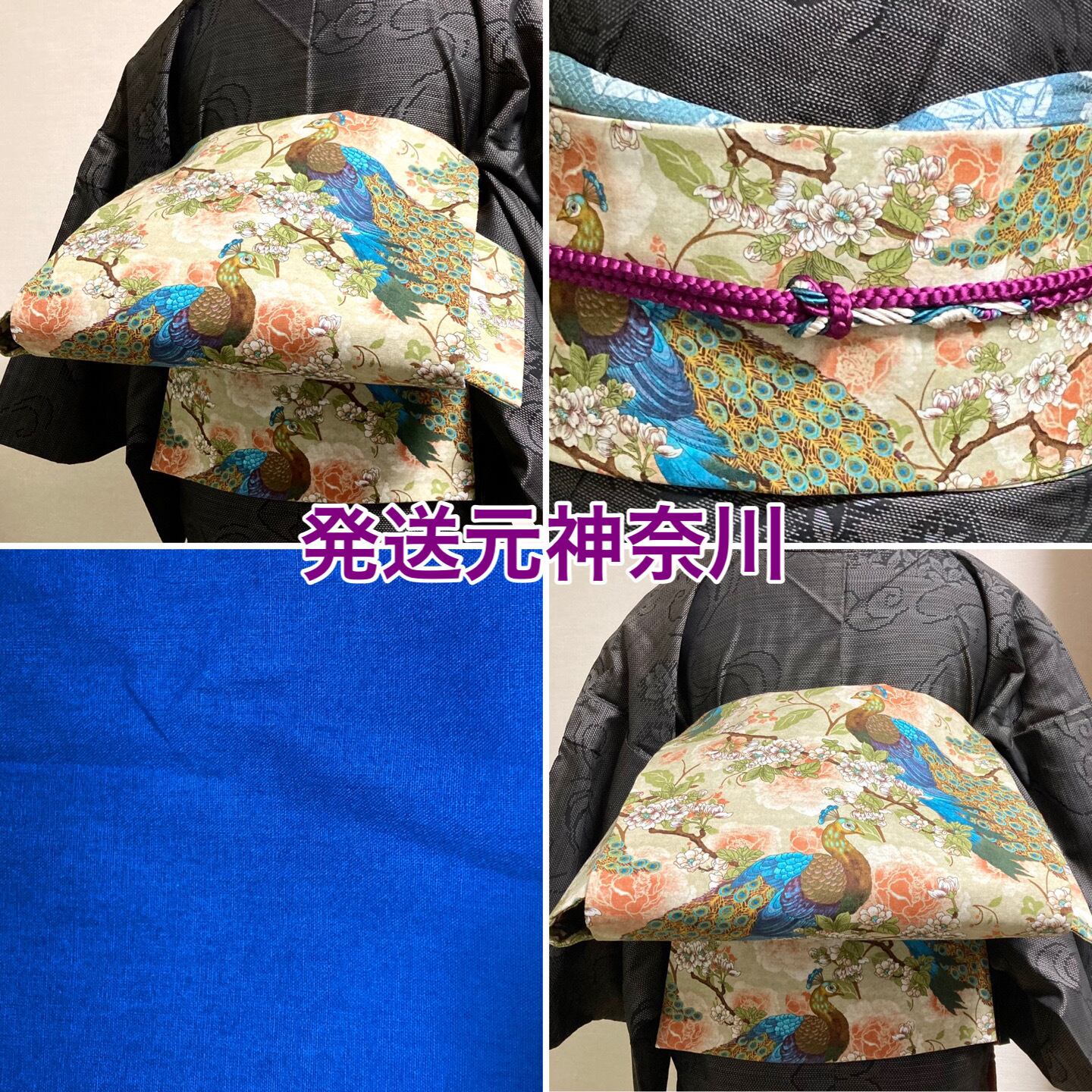 USAコットン 八重桜と孔雀柄 名古屋帯新品