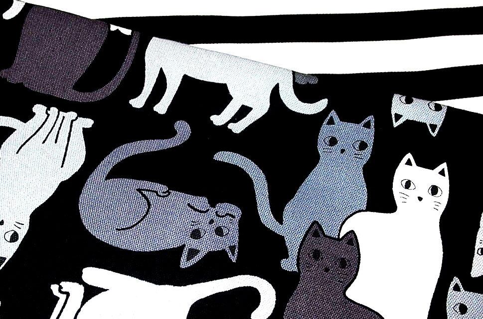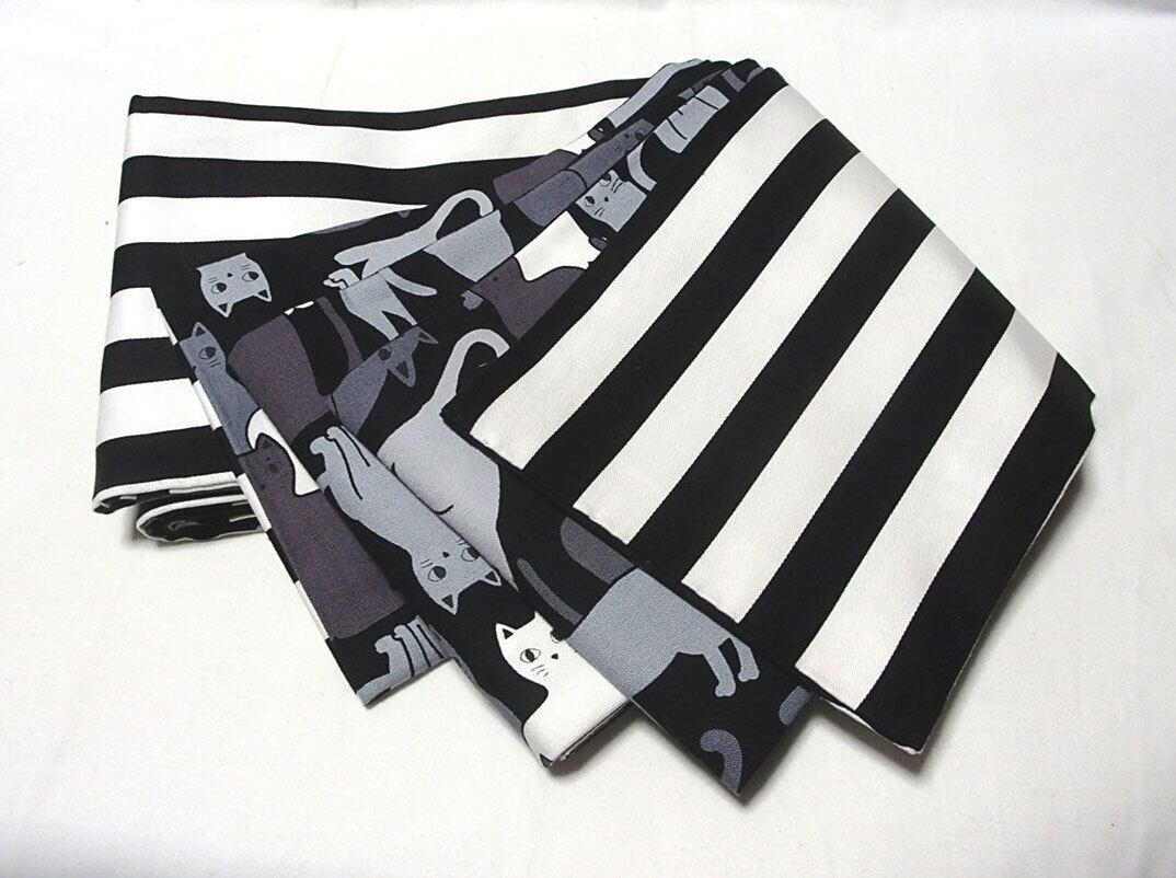 ●お羊屋モノトーン猫柄半幅帯新品長尺リバ